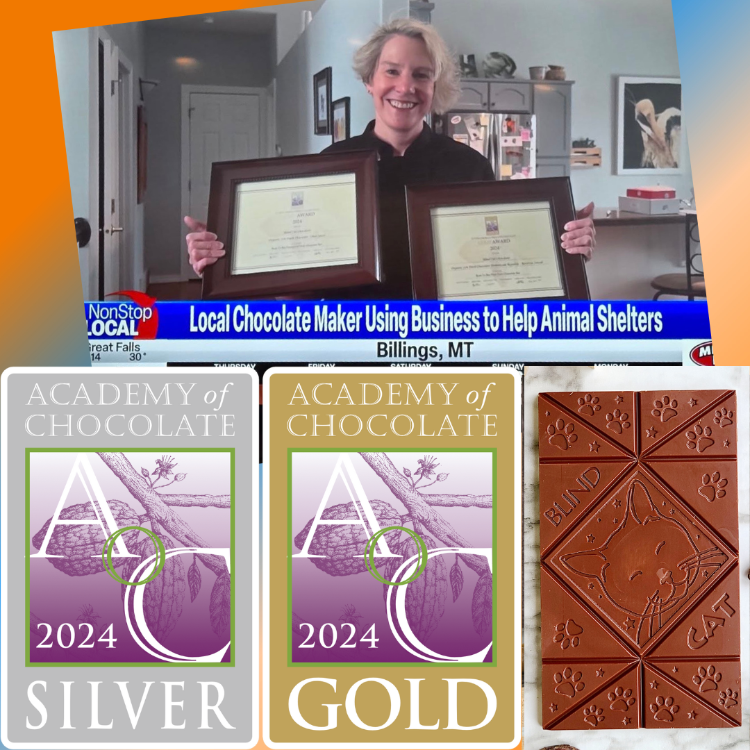 Billings, Montana – Blind Cat Chocolate is proud to announce its success at the prestigious Academy of Chocolate Awards, where it stood out among over 1,400 entries from more than 50 countries. The Single Origin 72% Organic Dark, Dominican Republic won Gold, while the 70% Organic Dark Chai Spice chocolate Bar earned Silver. Blind Cat Chocolate is the only chocolate maker in Montana to have received this award.