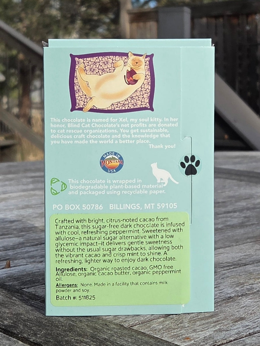 Crafted with bright, citrus-noted cacao from Tanzania, this sugar-free dark chocolate is infused with cool, refreshing peppermint. Sweetened with allulose—a natural sugar alternative with a low glycemic impact—it delivers gentle sweetness without the usual sugar drawbacks, allowing both the vibrant cacao and crisp mint to shine. A refreshing, lighter way to enjoy dark chocolate.